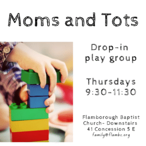 Where: Flamborough Baptist Church in the Kids Room on the lower level of the church.